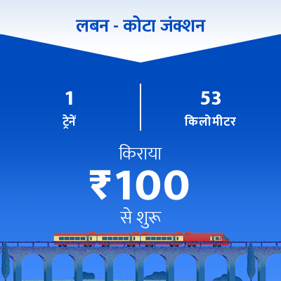 Laban to kota train. It also hosts a Centralized Database of Indian Railways Trains. Kota AirportKTU 62 km. The fastest train from Lakheri to Kota is Ranthambhore SF Express 12466 which travels a distance of 61 kms in just 42 mints.